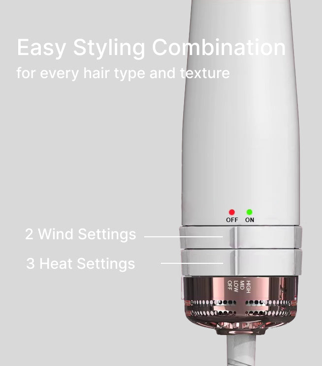 The Anemoi AirBrush has 2 wind speeds and 3 temperature settings, it can be used in multiple ways.